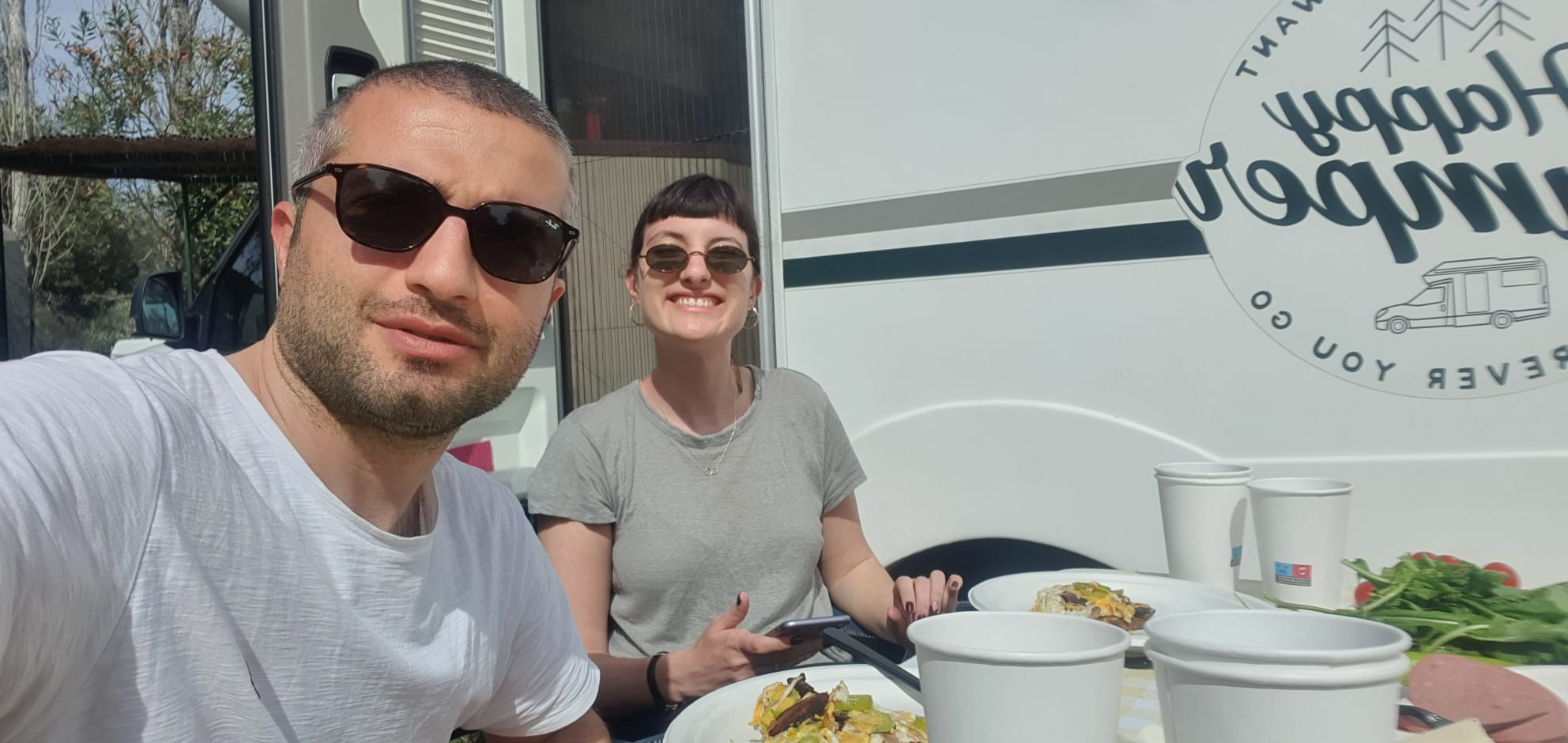 Sevgilim Mert’le tanıştıktan sonra ona bu sevdamdan sık sık bahsettim ve zamanla onu da karavan hayali girdabının içine çektim. Son derece iş bitirici ve deneyimlere açık bir korkusuz olan Mert, yaklaşık üç ay süren hayaller dönemimizden sonra bir karavan tatiline gitmeyi teklif etti. Uygun bir araç, uygun bir tarih ve uygun bir rota bulduktan sonra Nisan 2022’de ilk kez karavana dönüştürülmüş bir Doblo olan Ronin’le Ayvalık’a doğru yola çıktık.
